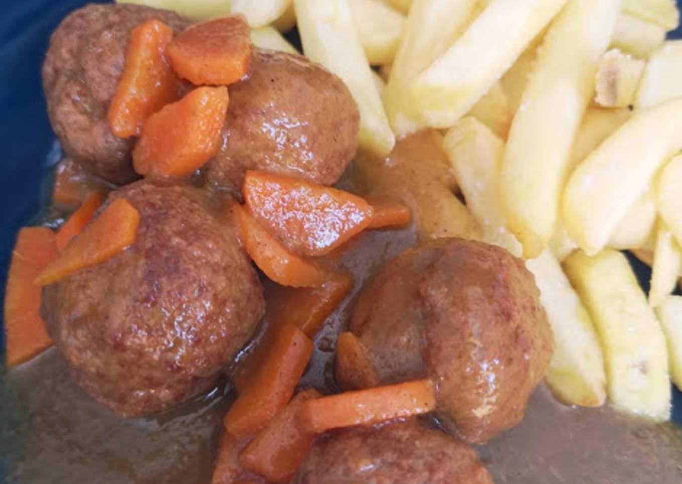 - Nosotros lo hemos acompañado con patatas fritas, que es lo que le pega a las albóndigas. Pero esto ya es a tu elección. Y listo.