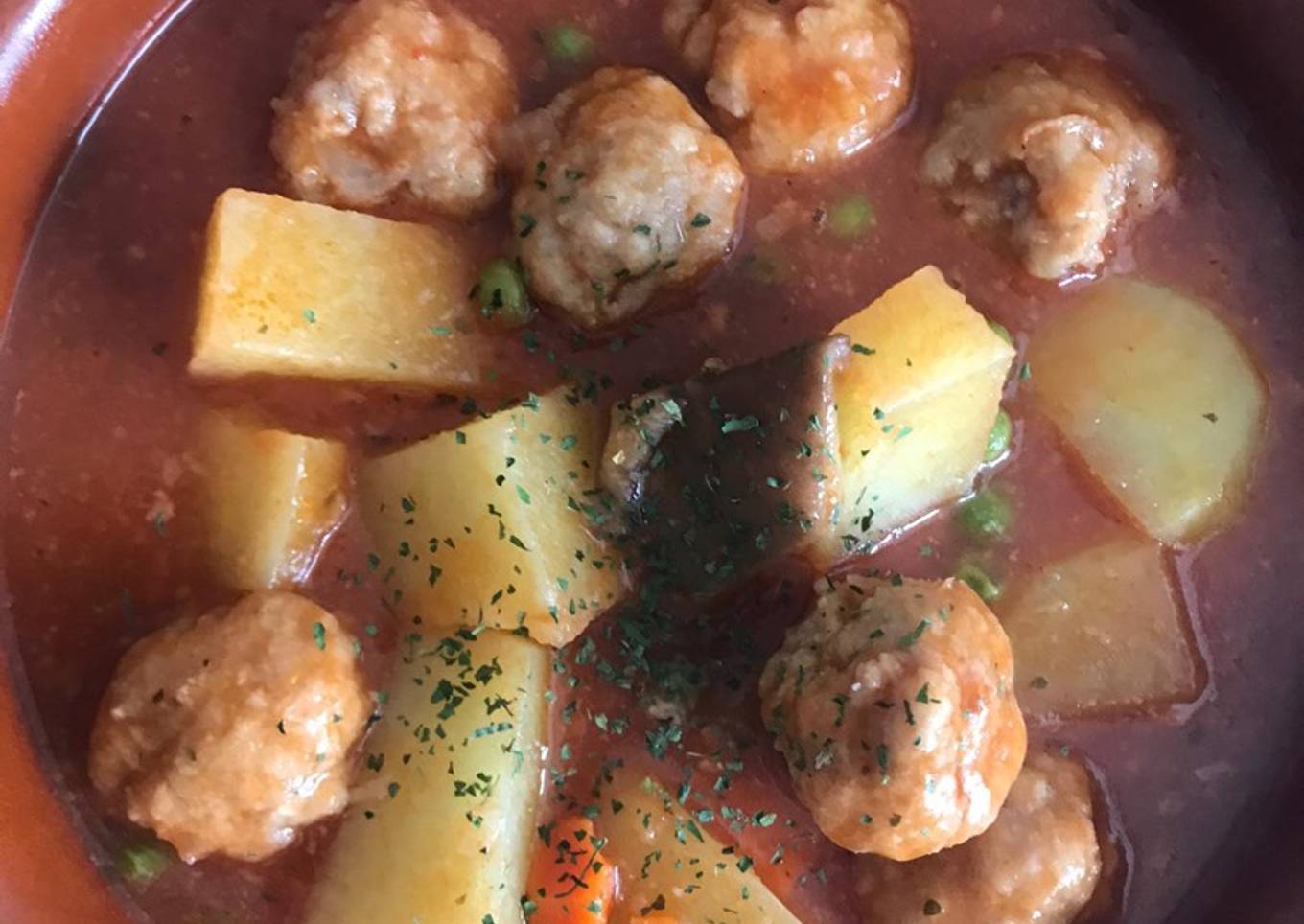 Este plato lo hice a pedido de mi hija. Es ideal para un día de frío, hay muchas versiones del estofado de papas, hoy quise probar hacerlo con albóndigas, me quedó ....riquísimo!!! Espero les guste!!